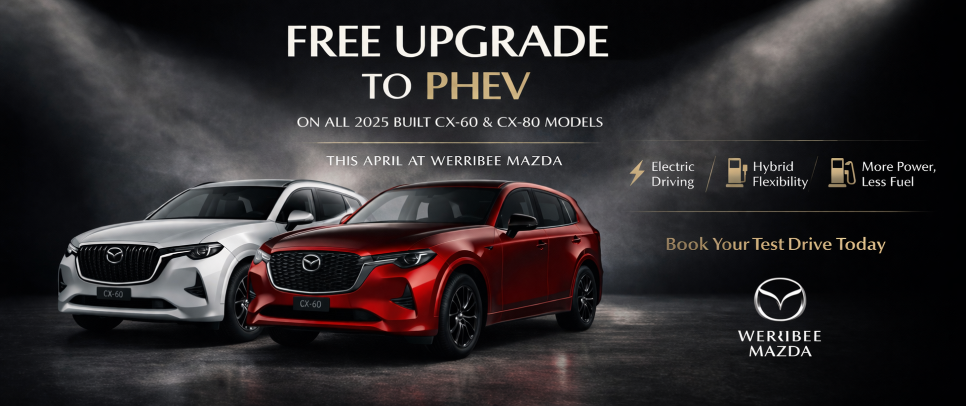 For a limited time, receive a complimentary upgrade to PHEV on all 2025 built CX-60 & CX-80 models.